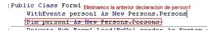 Agregamos la instrucción WithEvents antes de la declaración person1, como se muestra en el código siguiente: